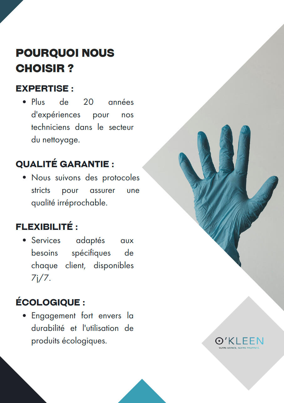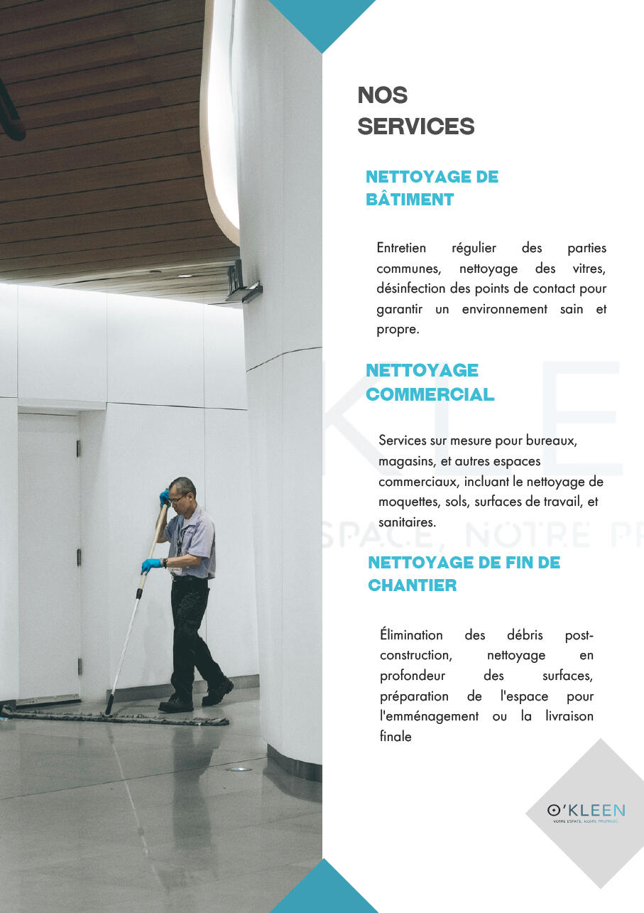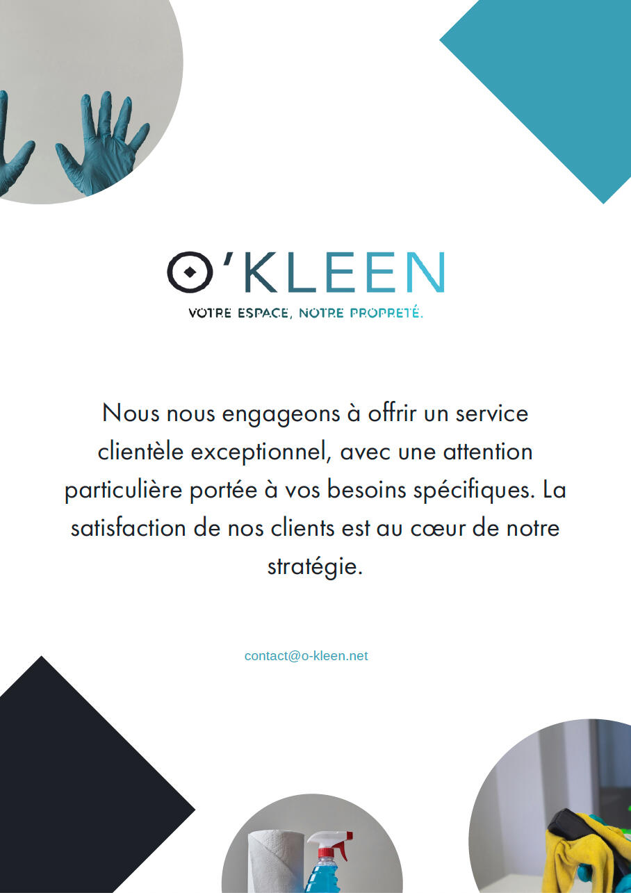 O’KLEEN est votre partenaire de confiance dans l'entretien et la propreté de vos espaces professionnels et privés.